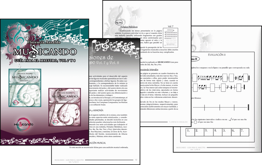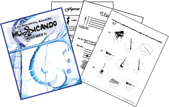Los libros Musicando proponen abordar el lenguaje musical, a partir de la unión entre la percepción y la teoría, de forma lúdica y didáctica. Cada cuadernillo tiene 3 secciones para que los estudiantes trabajen con sus profes: Ritmo, Melodía y Audición Inteligente. Dado que se pensaron y desarrollaron para que el contenido sea de dificultad progresiva, no se basan en grados ni niveles escolares, lo que permite que el o la Profe pueda elegir en todo momento cuál utilizar y qué actividades son más adecuadas para el grupo que le toca coordinar.